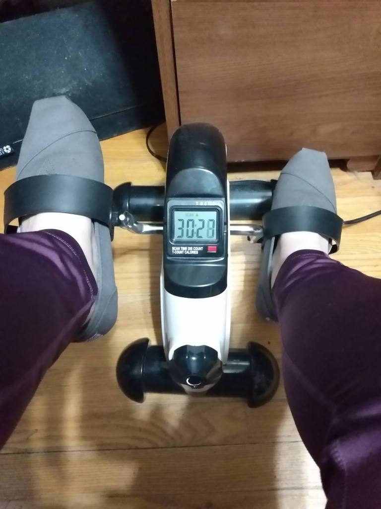 Monday: Kicked off they by waking up at 5 am. I was able to get in 22 minutes using my pedal-er (pictured below). I purchased this little device last year after my yearly physical. My doctor recommended I get one to help me begin moving more. Specifically he said it would be good for my ankles, knees and hips. Since I have been working from home, he thought this was the easiest way to encourage me. I found this one online for around $40. That first week I could only do a couple minutes at a time. Over the last year I have come to enjoy using this to help wake me up. I put on my headphones and jam to my favorite tunes. It has really helped me get into a habit of moving everyday.